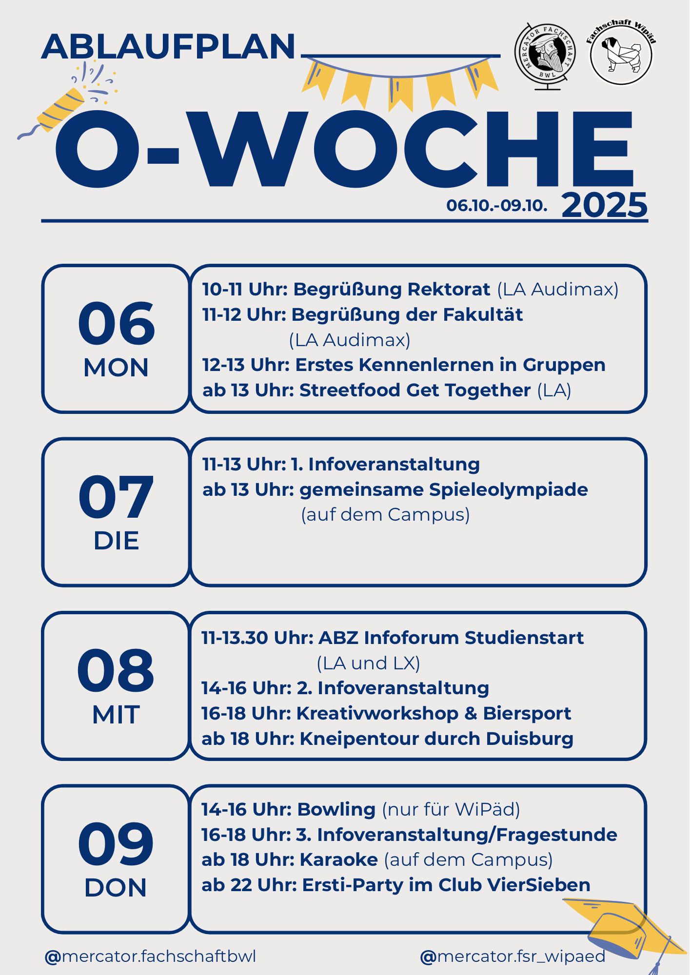 - Bei Fragen könnt ihr uns direkt per Mail erreichen unter: o-woche.fsbwl@uni-due.de.